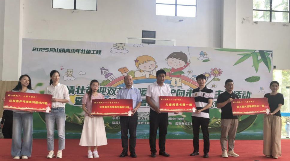 5月30日,同山镇“粽情壮苗迎双节·暖心守护向未来”主题活动暨“布谷鸟”暑期成长营课程发布活动在同山镇中心学校室内体育馆顺利举行。学院图书馆馆长宣王威、人文学院、马克思学院党总支书记周聪、诸暨市和同山镇相关领导出席活动,学院师生代表参与本次活动。