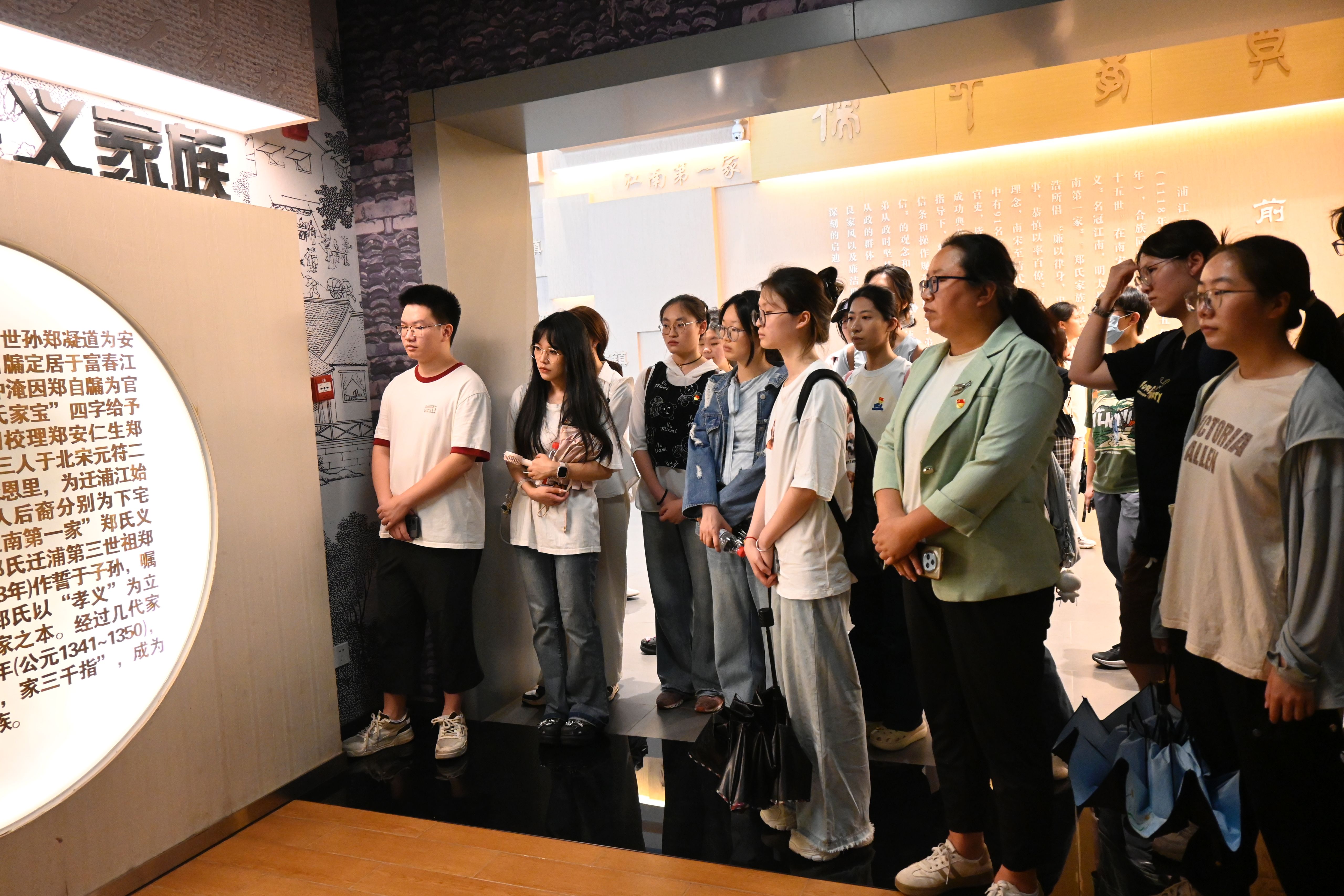在讲解员的带领下,师生们依次参观了郑氏家风馆、廉政教育展厅、郑氏宗祠等场所,大家深入了解了郑氏家族十五世同居、三百余年不分家,以清廉家风传承千年的感人故事,深刻感受到了郑氏家族“以德正心、以礼修身、以法齐家、以义济世”的家国情怀。在廉政教育展厅,一个个鲜活的案例警示着权力失控的危害,师生们驻足观看,认真聆听。在郑氏宗祠内,师生们驻足观看悬挂的匾额、楹联和历代名人的家训家规,仔细研读“郑义门”的廉政故事和治家格言,这些故事和格言让师生们深刻认识到廉洁自律的重要性和必要性。