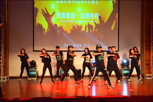 晚会在劲爆的开场舞终拉开序幕。节目《歌曲联唱》、《尤克里里》将不舍,祝福用歌声伴着情节传递给全体毕业生们;《新闻雷播》将创意和欢笑相融合;街舞队则带来了极具个性的舞蹈;毕业生陈斌用嘹亮动听的歌声,诉说出对学院老师和同学们的不舍;学院社团三面墙剧团带来了精心准备的相声表演《义气千秋》;优秀毕业生代表张依婷带来了精彩的吉他演奏,同时作为毕业生代表发表了毕业感言。