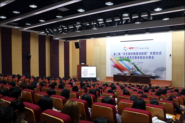 10月25日晚,学院第二期“学生组织精英训练营”开营仪式暨叶少康先生青年励志分享会在图书馆报告厅举行。院党委副书记蔡永华,院党委委员、工程技术系党总支书记彭樟林,院学工部主任、团委书记邓剑刚出席活动。院级团学组织指导老师、各系分团委书记以及第二期“学生组织精英训练营”300余名学员参加活动。