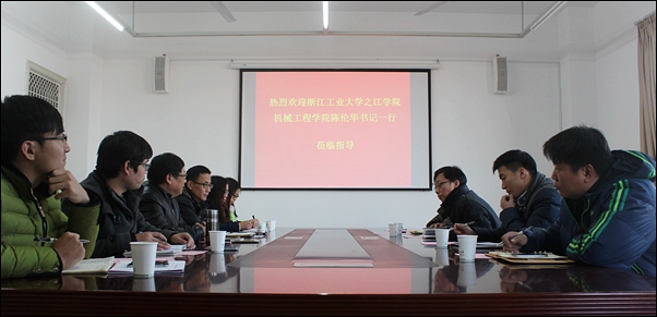 12月17日,浙江工业大学之江学院机械工程学院党总支书记陈伦华一行6人来必赢官网考察调研。工程技术系主任李映平、党总支书记彭樟林及学生办负责人参加座谈交流。