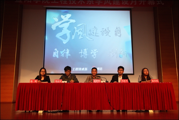 为进一步培育良好的学习风气,有效地促进学生学习积极性,养成良好的学习习惯,创造好学、乐学、上进的学习氛围,4月13日晚,工程技术系在明珠报告厅举行2016年学风建设月活动开幕式。系党总支书记彭樟林出席开幕式并作动员讲话。系全体辅导员,高年级学生代表和全体新生参加开幕式。