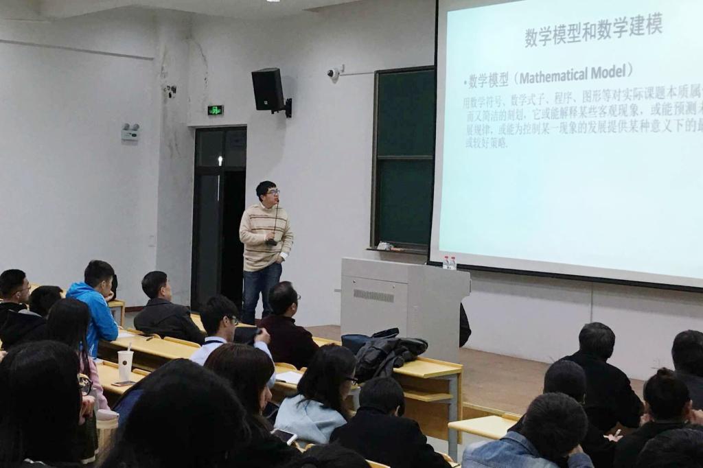刘伟主任近几年来指导学生获得过美赛和国赛一等奖等多个奖项,是全国大学生数学建模竞赛浙江省优秀指导教师,在大学生数学建模竞赛方面有丰富的实战经验。在两个多小时的报告中,刘伟主任用生动的实例、活泼的语言,针对什么是数学建模、数学建模对培养学生的能力有哪些重要作用,以及大学生如何准备、参加数学建模竞赛等各方面的问题进行了宣讲和阐述。