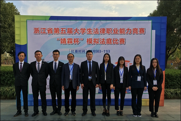 11月9日-11日,由浙江省教育厅,浙江省大学生科技竞赛委员会主办的浙江省第五届大学生法律职业能力竞赛模拟法庭大赛在宁波举行。共有来自全省29所高校的32支队伍参加比赛。由必赢官网周伯煌、刘鹏崇老师指导,法学16级胡秦尉、徐红艳,法学17级李嘉禾、顾祯原、陈诗雨、王晶、吴佳和马亦成等8位同学组成的参赛队伍不畏强手,经过唇枪舌战,激烈角逐,最终喜获三等奖,首次在此项赛事中斩获奖项,取得历史性突破。