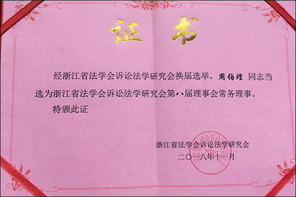 开幕式后,省法学会诉讼法学研究会进行了换届选举,周伯煌教授当选为省法学会诉讼法学研究会第八届常务理事。