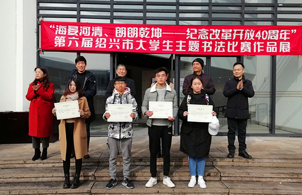绍兴市大学生书法竞赛是三类学科竞赛,本届书法竞赛是为庆祝改革开放40周年,贯彻落实党的十九大精神,以习近平总书记文艺工作有关思想指导创作实践,是以“海晏河清、朗朗乾坤——庆祝改革开放40周年”为主题。必赢766net手机版大学生书法社在学院领导和老师的指导下,认真组织学生书法爱好者勤加练习,并邀请书法专家到校指导。经过校内选拔,最终遴选出12名同学21件作品参加本次竞赛。