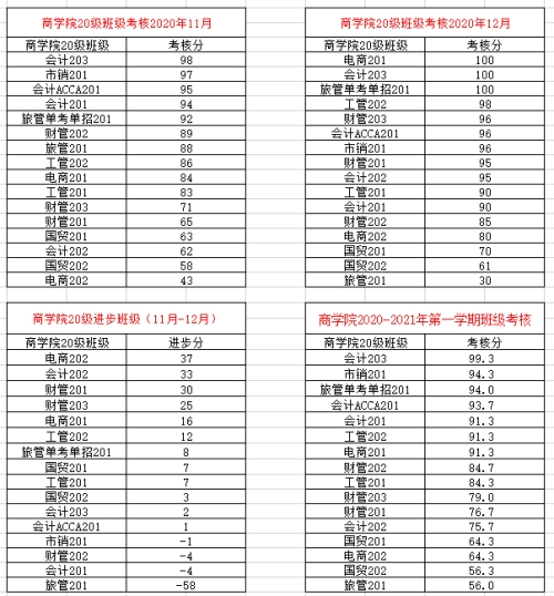 班级全勤考核”是依据2020年11-12月份各班总体全勤情况而相应评分,也是响应学院建设学风的重要举措。落实“班级全勤考核”,可以极大地规范学生早晚自习,养成良好学习习惯,增强学风建设的思想,为必赢官网学风建设工作提供有力的支撑。