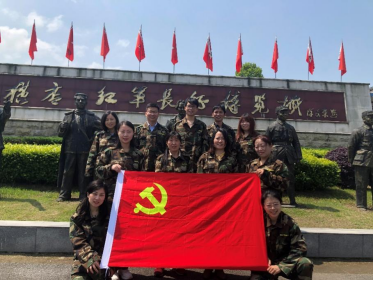 全体党员换好军装,参加了升旗仪式,并重温入党誓词。接着在教练的带领下,首先来到邵飘萍纪念馆,全体班子重温了有“铁肩担道义、辣手著文章”之称的新闻先驱、一代报人邵飘萍的生平事迹。随后,一行人来到工农红军长征简史馆,并沿着先烈的足迹,重走长征路,了解“半条棉被”的红色故事,通过“飞夺泸定桥”等模拟场景体验红军长征“不畏艰难”的革命精神。