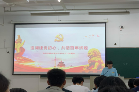 立于建党百年之际,回顾光辉岁月。为深入贯彻习近平总书记在党史学习教育动员大会上的重要讲话精神,重温历史,学习中国共产党人带领人民坚持不懈奋斗的光辉历程,法学专业学生党支部于2021年5月18日在人文2313以“追溯建党初心,共话百年辉煌”为主题,组织开展党史学习教育会。本次学习会由夏心怡同志主讲,法学专业支部全体党员、预备党员以及入党积极分子共同参加。