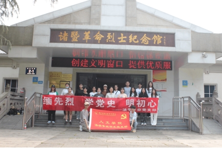 陵园肃穆,松柏苍翠,丰碑伟岸。为缅怀革命先烈,弘扬英烈精神和红色文化,加强党史学习教育,尊崇英雄,铭记烈士。法学专业学生党支部近日在诸暨革命烈士纪念公园开展校外党史学习教育,本次教育的主题为“缅先烈、学党史、明初心”。支部书记带领,支部党员代表共同参与。