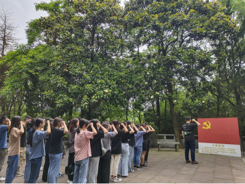 庄严肃穆的俞秀松烈士陵园纪念碑前,在会计学第二学生党支部书记宣佳亦老师的领誓下,全体师生党员高举右拳,面对鲜红的党旗重温入党誓词。