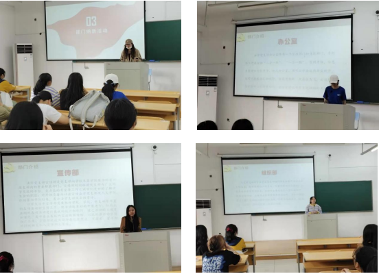 党支部各部门的代表上台进行介绍。向法学专业新生传递红色文化知识,加深了其对党组织以及法学专业党支部的了解,增强了其对党支部的认知,更坚定了他们对党的理想信念。