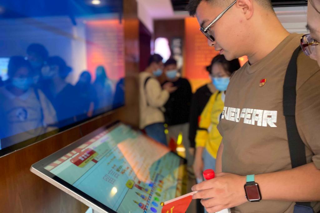 党的历史是最生动、最有说服力的教科书。参观过程中,解说员绘声绘色地介绍金萧支队的历史和当地伟人的事迹,在一个个展台、一幅幅图片、一件件实物面前,大家驻足观看,认真倾听,深入了解了黄家店红色金萧历史。随后,老师和同学们纷纷在电子留言板上留言来表达对祖国的祝福和对英烈的缅怀。