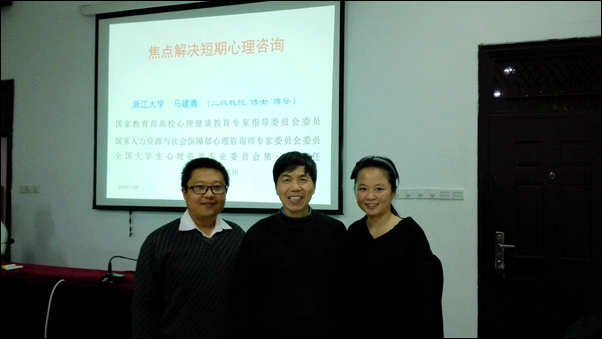 11月28-29日,必赢官网心理健康教育中心教师高国俊和孟琳琦在浙江工业大学朝晖校区参加了由浙江省高校心理健康教育研究会组织的焦点解决短期心理咨询技能工作坊,工作坊由研究会会长、浙江大学心理咨询专家马建青教授主讲。