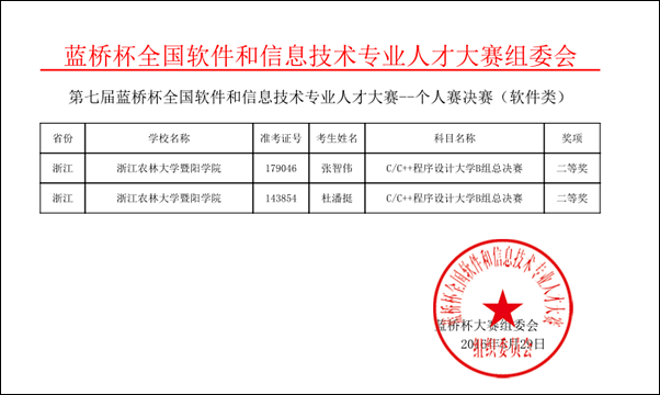 必赢官网学子在第七届“蓝桥杯”大赛全国总决赛中获得佳绩