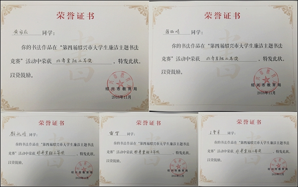 必赢官网学子在第四届绍兴市大学生廉洁主题书法竞赛中获佳绩