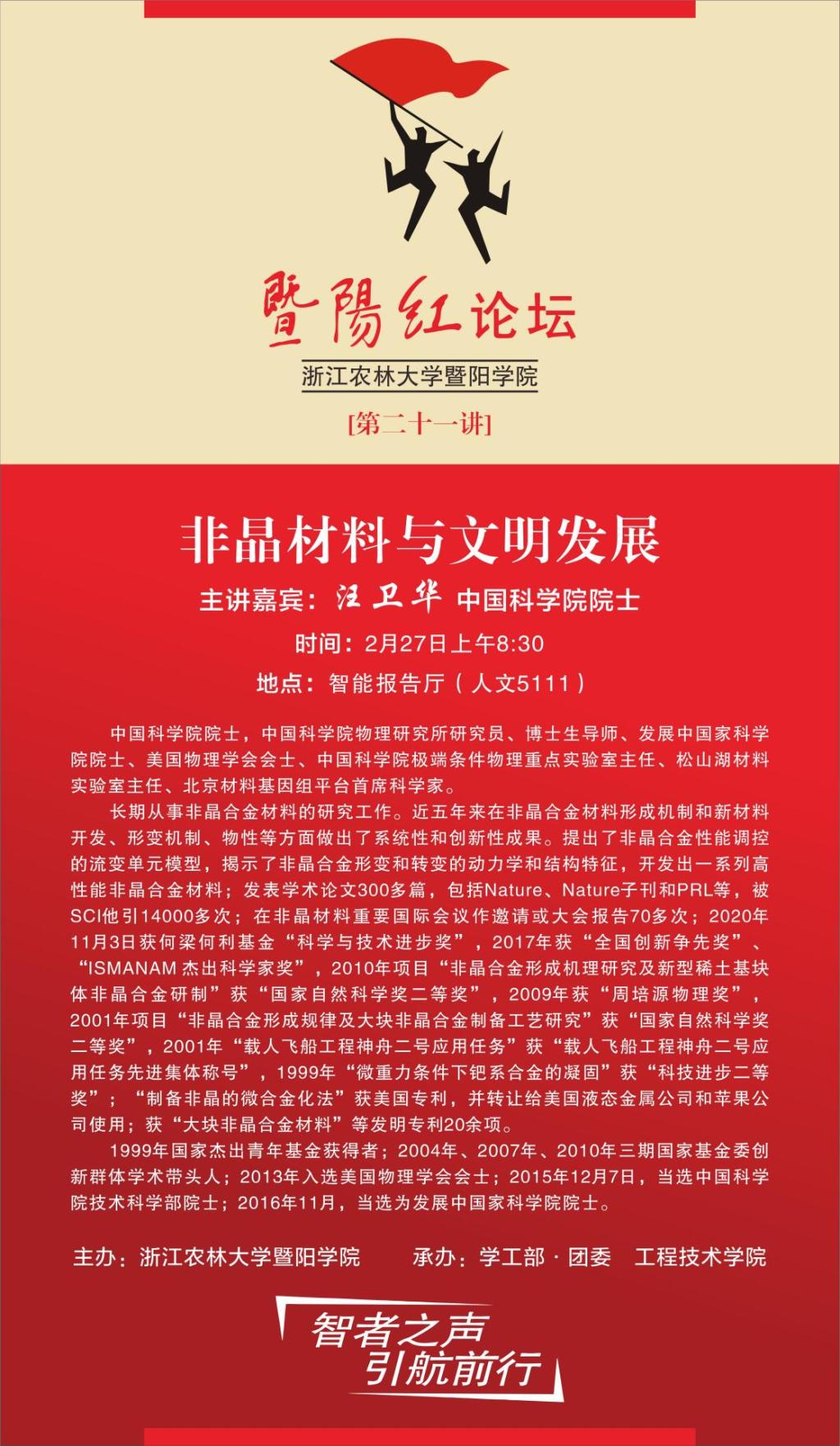 【“暨阳红论坛”第二十一讲】非晶材料与文明发展