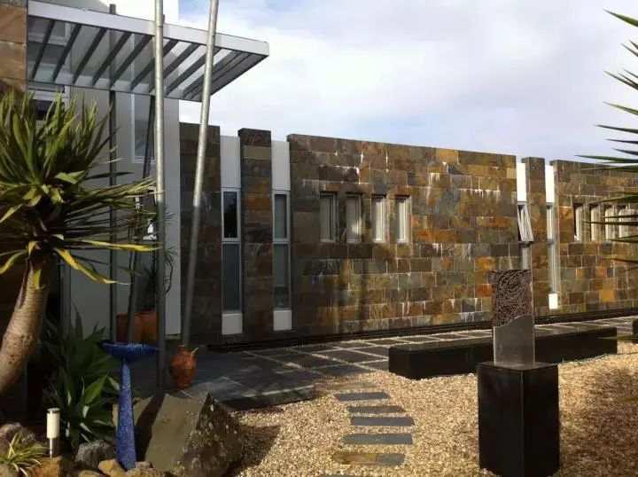 依坡而建的住宅,以原始石材大墙作为依托,南、北、东三面、采用全幅落地幕墙玻璃,组合在这个600平方米住宅中,面对海湾宽阔的视角,从室内每个角度享受着大自然美景和奥克兰城市夜景。