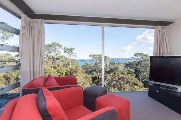 进入主人套房,好像进入悬在空中的玻璃房子,180度宽阔的海景,自然植被及奥克兰城市景观,尽收眼底,全幅落地玻璃,把自然引入室内,海光山色,跃入眼帘。