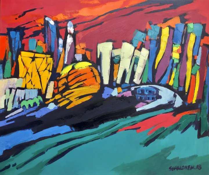 《杭州城市阳台》油画 100x120 cm