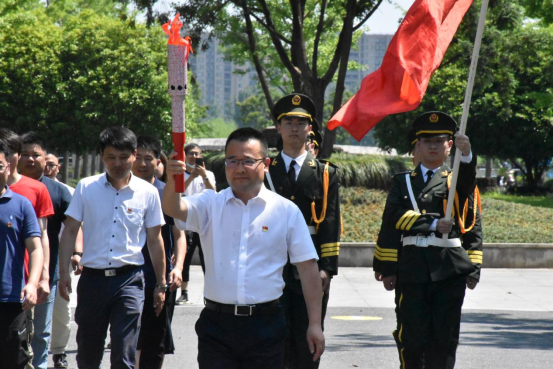潘书记点燃并高举星星火炬,跟着党旗的指引,沿着党史的前进线路,进行薪火传承,带领代表领略我党的往昔峥嵘岁月。一路上共设6个红色革命根据地,集结了50、60、70、80、90、00后师生党员,最终在图书馆广场前成功会师。