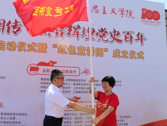 “青蓝相接薪火相传,点赞辉煌党史百年”庆祝建党一百周年系列活动启动仪式暨红色宣讲团成立仪式圆满完成。据悉,人文学院、马克思主义学院党总支将在未来继续围绕党史学习教育“七个一”工作思路,以“七音符”奏响党史学习教育开场曲,陆续开展“学党史,悟清廉,庆百年”清廉教育知识竞赛、“学党史,听讲座,庆百年”意识形态和师德师风专题讲座活动以及“学党史,讲党课,庆百年”党支部廉洁专题党课等活动。