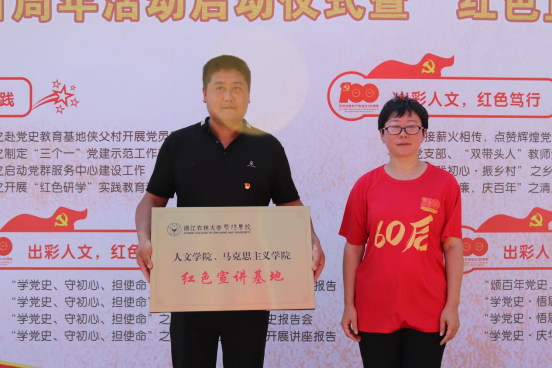 红色宣讲团成立仪式中,潘国忠书记为红色宣讲团代表授旗,马克思主义学院副院长雷梅珍收旗;红色宣讲基地授牌仪式中,人文学院院长刘伯茹,为墨城湖小学授牌,墨城湖小学校长陈钧炳收牌;党团实践基地授牌仪式中,人文学院、马克思主义学院党总支书记宣王威为姚江镇中心学校进行党团实践基地进行授牌,姚江镇中心学校校长王海燕收牌。最后,姚江镇中心学校校长王海燕就未来与人文学院、马克思主义学院的合作做出畅想并预祝顺利。