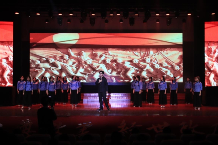 徐春霞老师说:“2019年在纪念五四运动100周年之际,作为学院机关第二党支部副书记,组织支部成员去参观了俞秀松故居,认真聆听了俞秀松的事迹。时隔两年又亲自参与俞秀松舞台剧编演,通过观看同学们的一次次彩排,被俞秀松先生的革命事迹深深打动。尤其当全场齐唱没有共产党就没有新中国,熟悉的旋律想起,爱国的热情进一步燃烧,心情久久不能平静。”