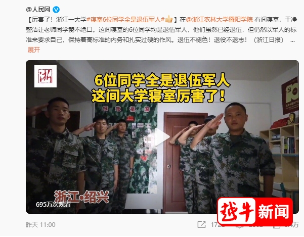 越牛新闻:6人全是退伍兵!绍兴这所大学寝室聚齐“海陆空”