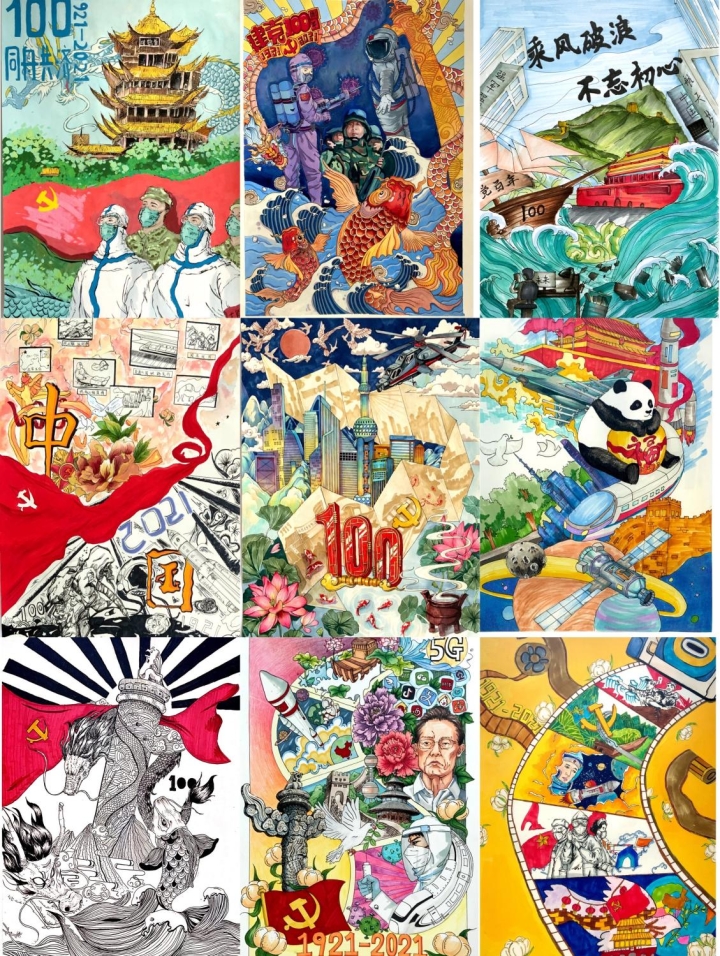 此次活动增加了党史学习教育的趣味性,通过绘画的形式,将对党的歌颂与赞美赋予笔端,在画纸上描绘出建党百年来的时代变迁和生活变化。活动共挑选了130余幅作品,在学院图书馆报告厅展览,吸引了数千名师生前来参观。