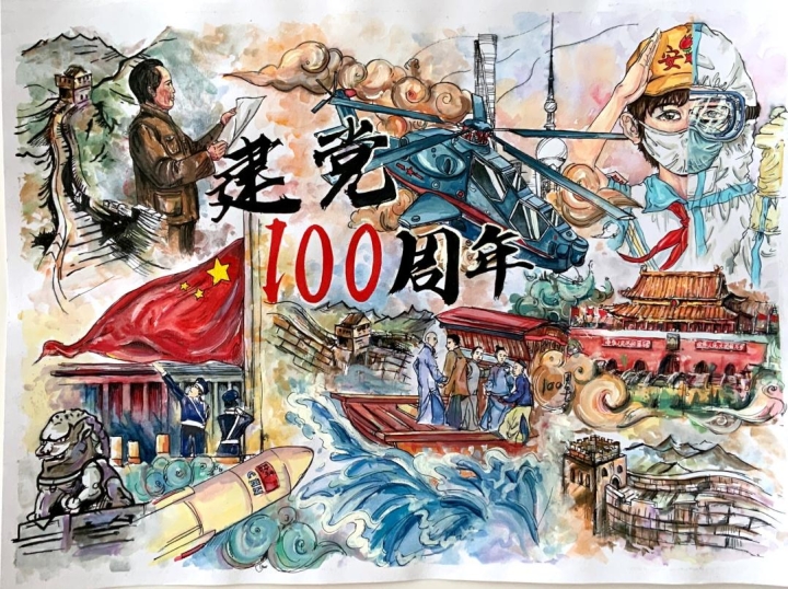 恰逢建党100周年,学院党史学习教育火热进行。“在讨论如何丰富党史学习教育载体,将‘以美育人、以文化人’有效结合的时候,与手绘课专业老师袁政老师一拍即合,决定上一堂属于艺术类学生别开生面的红色思政课。此次活动的开展,发挥出了同学们对红色文化传承的主观能动性和创造性,让参与创作的同学们产生了强烈的自豪感,起到了思政教育春风化雨,立德树人润物无声的作用。”园林学院党总支副书记彭安琪说道,接下去,“建党百年 初心如磐”五个一百系列活动之“百花齐放 为党庆生”“百旗百村 幸福寻访”也将陆续开展。