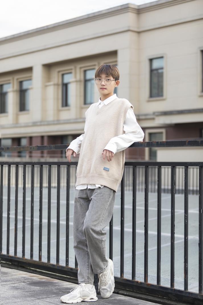 少年感可不是夏天的专属,白衬衫在冬天也同样可以散发光彩。衬衫外搭修身的羊绒背心,配上合适的休闲裤与球鞋,戴上眼镜,少年感便自然的显现了出来。