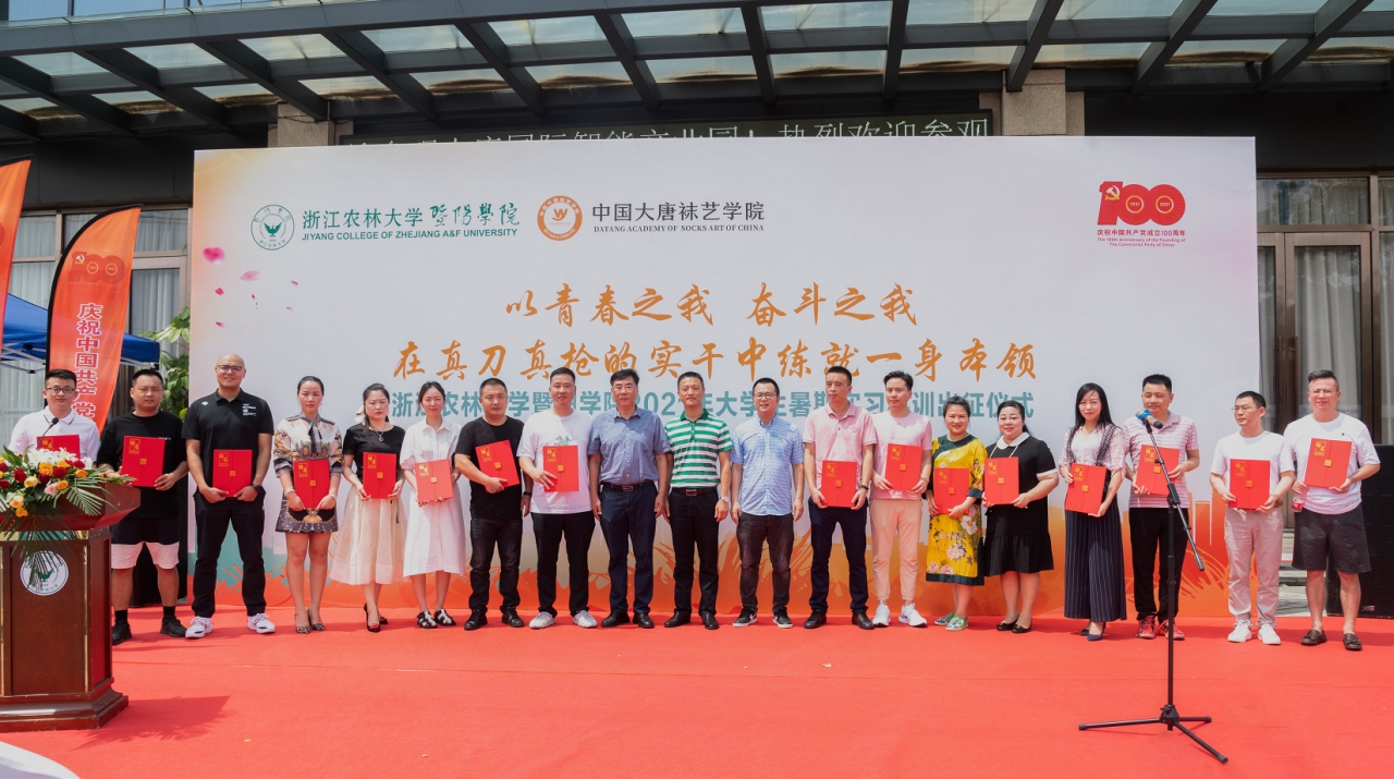 出征仪式上,浙江凯诗利科技有限公司董事长戚建军等17位我市优秀企业家接过必赢766net手机版中国大唐袜艺学院的聘书,受聘担任该校48位本科生的创新创业导师,17位导师将在学生毕业实习创新创业项目、毕业论文等环节给予指导。