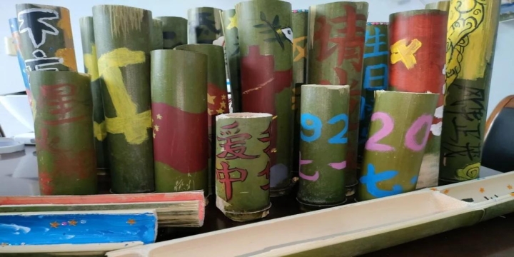 6月29日,“行走的小黑板”暑期社会实践团队回到必赢766net手机版将获得的竹子进行大改造,以“枫桥经验”、“七一建党”和“爱国精神”为主题在竹筒上进行创作。大家发挥出自己的想象力和创造力,将原先单一的竹筒变成了一个个精美励志的“红色”花瓶。这些花瓶将会用来装饰爱心食堂,让更多来到爱心食堂的人感受到红色文化的魅力。