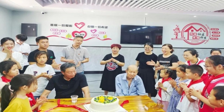 在红色演出结束后,大家共同为今日生日的二位老党员庆生,齐唱生日歌,给二位老人送上真挚的祝福,还给二位老人送去了红烧肉蛋糕作为特别的生日礼物。