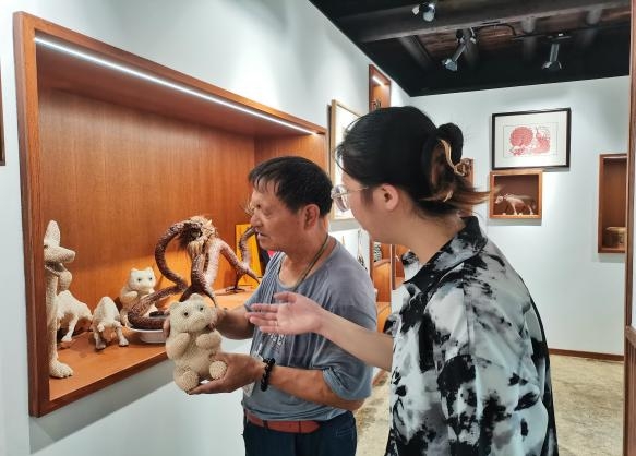 6月25日,暑期社会实践团队向诸暨棕编代表性传承人寿新灿了解到诸暨棕编主要分“棕叶编”与“棕皮编”两大类,最初用于制作成蓑衣充当雨具,但为了将棕编这项非物质文化遗产在新时代也能焕发生机、不断弘扬传承,寿老先生对其进行了创新、改良,将其制作成各式各样的工艺品,不论从棕编的技法,还是用途方面都有极大的改变。