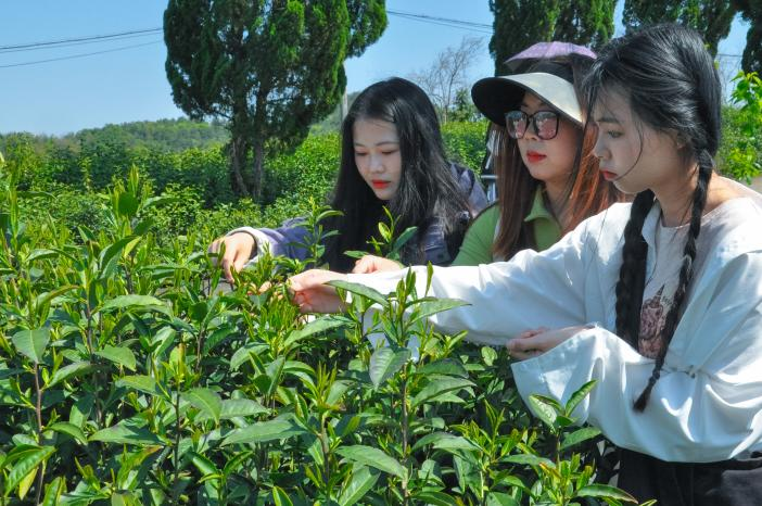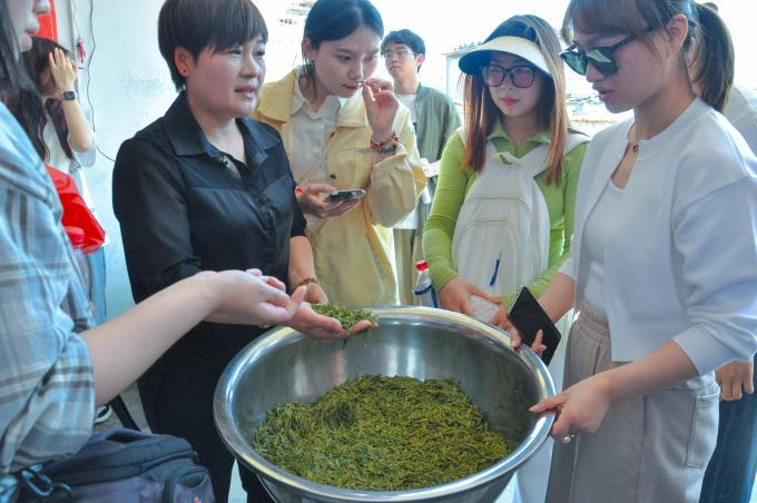 在经过短时间的采摘培训后,党员志愿们化身“采茶人”,帮助农户采摘新茶,形成茶山上一道靓丽的风景线。师生党员来到了当地制茶工厂,亲自体验制茶的过程。“采摘回来的茶叶先要摊晾,接着就开始杀青、揉捻、反复复烘揉捻……”有着丰富制茶经验的老茶农一边为师生党员示范,一边讲解。