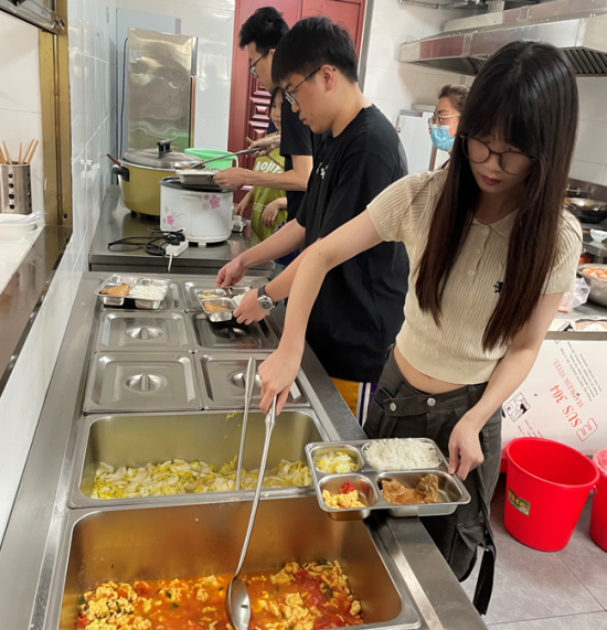 在五泄镇江滨村的爱心食堂里,老人手把手教党员们包粽子的技巧,党员们手法显得不太熟练,但这并没有减少他们包粽子的热情,爱心食堂里充溢着浓浓的端午氛围。随后,党员们在爱心食堂打好饭菜,带着包好的粽子一起去看望留守老人,献上了自己的一片心意。