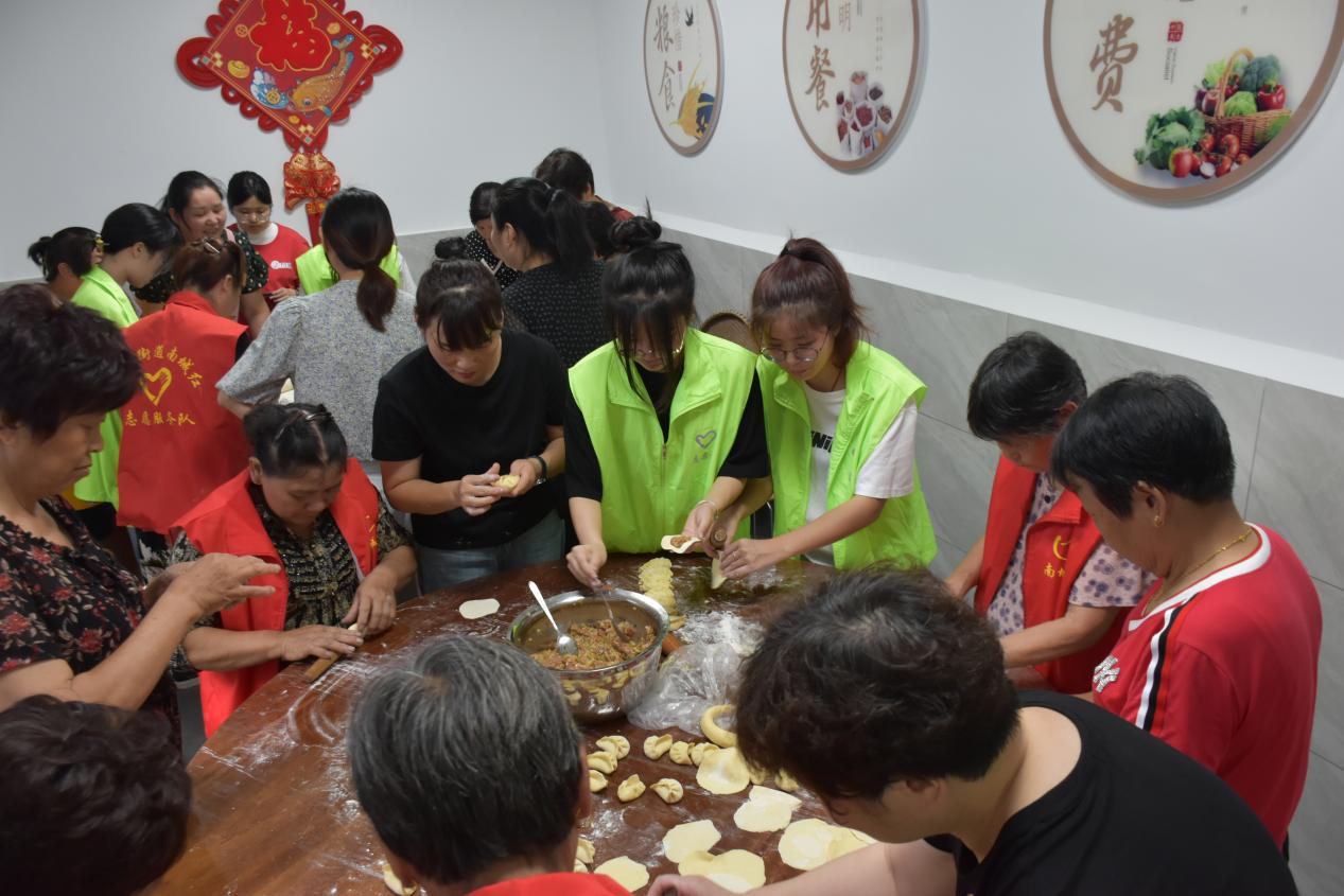 包饺子前,团队成员们帮助食堂打扫庭院,擦拭桌椅,为老人们提供一个舒适整洁的环境,并与爷爷奶奶一起闲话家常。“来包饺子啦。”在食堂师傅的指导下,团队成员与老人边聊边做,互帮互助,干劲十足。大家还制作了肉饼和千层饼。爱心食堂到处洋溢着“家”的味道和“家”的温暖。