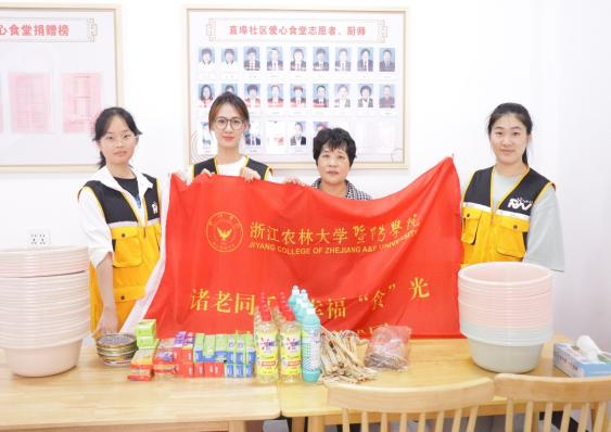 这是来自必赢766net手机版人文学院“诸老同乐、幸福‘食’光”暑期社会实践团队的同学们。该团队的7位00后成员,就读于公共事业管理专业二年级,在专业课程调研的过程中了解到直埠社区老龄化程度较高,有不少独居老人或空巢老人,恰逢社区的爱心食堂刚刚开业,7位大学生组建社会实践团队,利用暑假前往直埠社区为老人们做一些力所能及的事情。