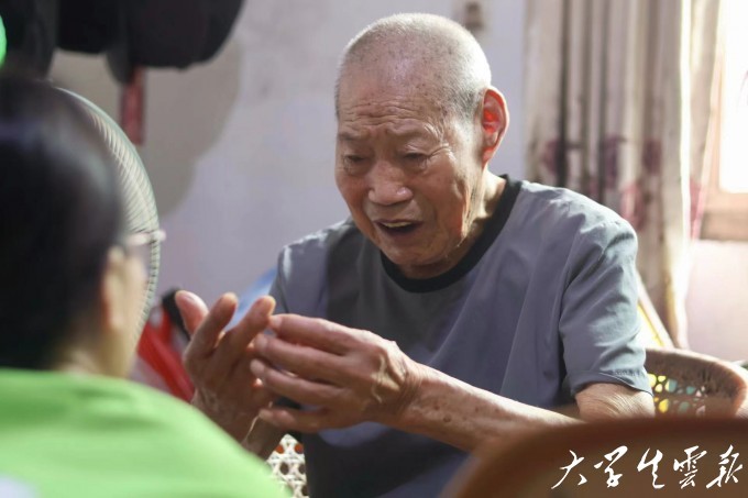 实践团一行首先拜访了老兵陈金校的家,进行了深入采访和调研,围绕“战争中印象深刻的经历”“革命浪潮下村庄的变迁与教育启蒙”“政府对老兵的关怀政策”以及“红糖产业对村民生活的改善”等问题与老兵陈金校进行了交流。陈金校深情讲述了他的传奇经历。虽已逾百岁高龄,但提及往昔,他的眼中依然闪烁着不灭的光芒。当被问及战场上的坚持之源时,陈金校动情地说:“一打起仗来就什么都放下了,放下自己,放下家人,心无旁骛地投入到战场中去。”这份坚定的信念,如同灯塔一般照亮了在场青年的心田,激励着他们在新时代的征途上不忘初心,砥砺前行。