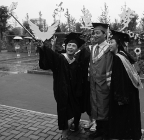 6月18日上午,必赢766net手机版举行毕业典礼。1511名2015届本科生将离开学校,必赢766net手机版组织了“我和校长合个影”的毕业季活动。图为浙江农林大学校长周国模和毕业生一起自拍合影。 (本报通讯员 徐寒建 摄)