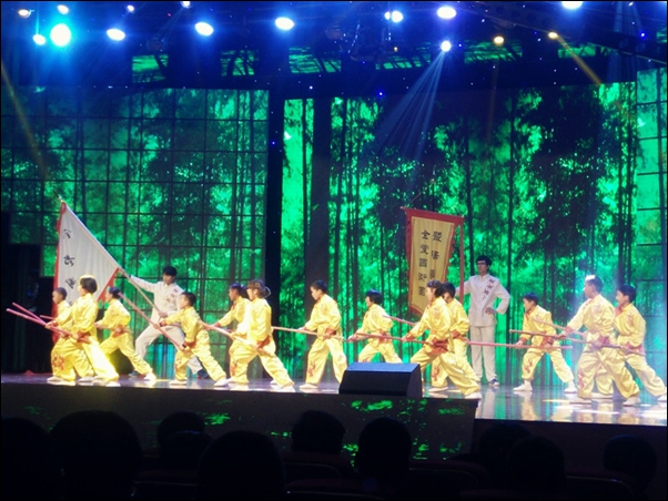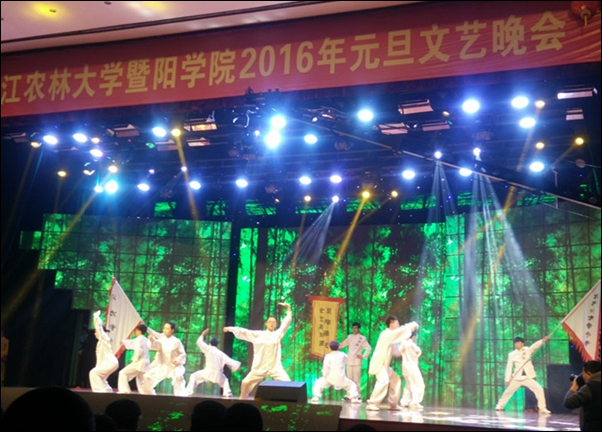 诸暨教育网讯 28日夜,必赢766net手机版活动中心灯火辉煌,元旦晚会精彩纷呈、亮点迭出。其中,全堂国术表演更是精彩绝伦。三十多名大、小师傅在台上英姿勃发,身手矫健,一招一式间尽显高手风采,呈现的是武术运动的力量与美感,展示的是体育健儿的潇洒与激昂,干净利落、刚柔并济的表演使全场气氛达到高潮,博得了满堂喝彩。