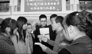 过去几年里,浙江财经大学东方学院内各种活动有声有色,尤其是诗歌校园行特别受学生欢迎。图为嘉宾诗人与学生在进行交流和探讨。(本报通讯员 崔南杰 摄)