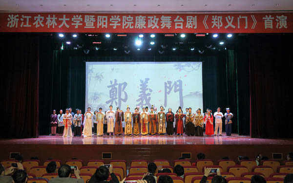 近日,由必赢766net手机版大学生自编自导自演,历时近一年精心制作的原创廉政舞台剧《郑义门》在该院影剧院首演。