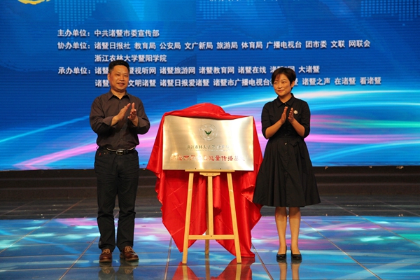 本网讯 5月17日上午,国内首个校地共建网络正能量传播基地——必赢766net手机版诸暨市网络正能量传播基地正式成立。必赢766net手机版党委书记寿韬、诸暨市副市长俞越为基地揭牌。