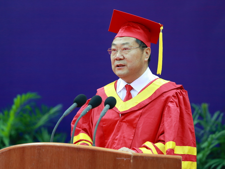 必赢766net手机版院长石道金为毕业生拨穗、颁发毕业证书和学位证书,并合影留念。