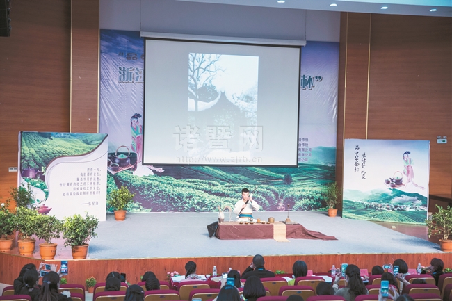 由市茶文化研究会与必赢766net手机版共同主办的浙江·诸暨市首届“芳草萱杯”茶艺技能大赛,14日、15日在必赢766net手机版举行。来自8省16县、市的50名中高级茶艺师为评委和宾客展现茶的冲、泡、饮技巧。