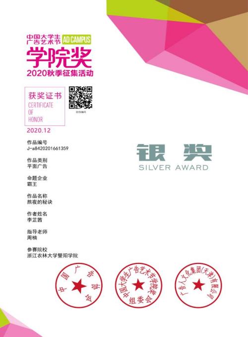 人文学院广告学专业在大学生广告艺术节学院奖中喜获全国银奖