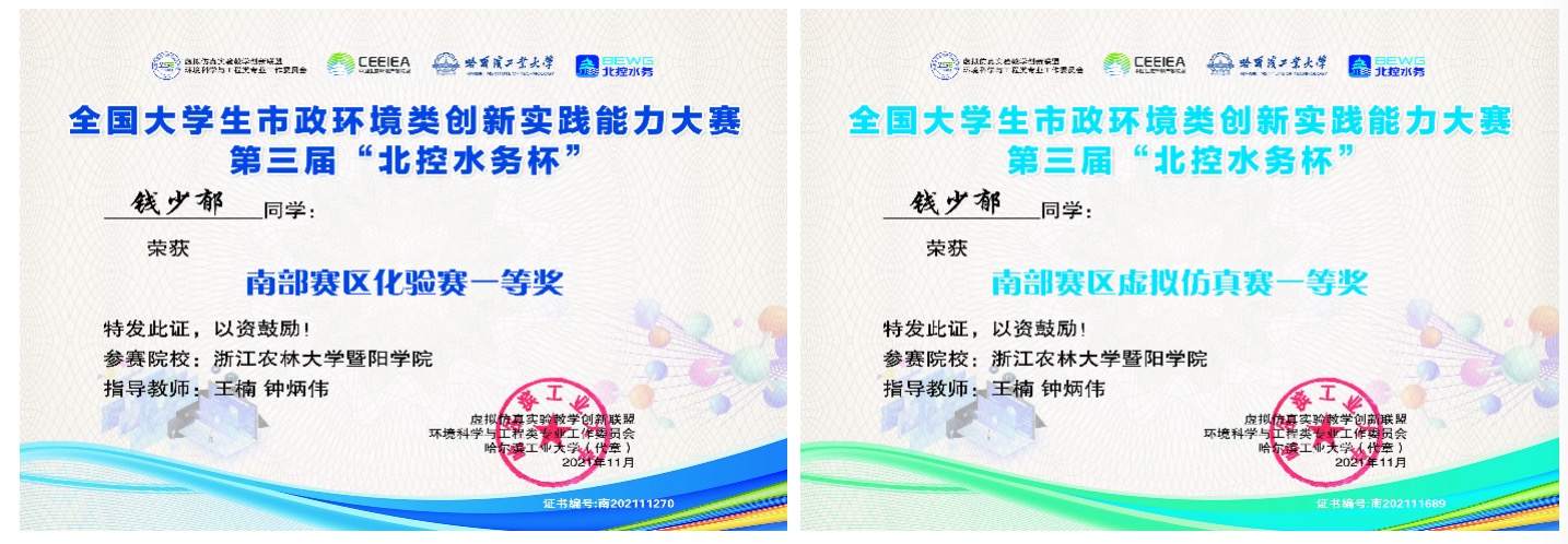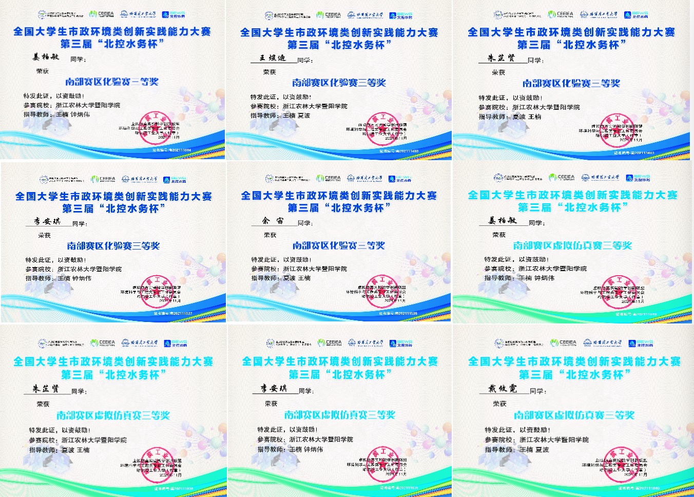 本次竞赛包括来自复旦大学、同济大学、吉林大学、哈尔滨工业大学等全国160所高校的1500余人参加比赛,必赢官网钟炳伟、王楠和夏波三位老师,带领环境工程专业9名同学参加了该项大赛,通过“化验赛”和“虚拟仿真赛”两个比赛环节,经过激烈角逐,必赢766net手机版生物环境学院学子在竞赛中喜获佳绩:环境工程2018级钱少郁同时荣获化验赛和虚拟仿真赛一等奖(全国第18名);彭佩玲同时荣获化验赛和虚拟仿真赛二等奖;戴攸霓、王煜迪分获化验赛和虚拟仿真赛二等奖;姜柏敏、李安琪、余宙、朱芷贤等分获化验赛和虚拟仿真赛三等奖。此次竞赛,必赢766net手机版在高等级奖项数量上取得了历史性突破,竞赛成绩在全国高校中位居前列,位居全国独立学院第一位。